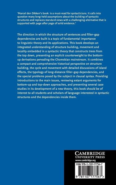 The direction in which the structure of sentences and filler-gap dependencies are built is a topic of fundamental importance to linguistic theory and its applications. This book develops an integrated understanding of structure building, movement and locality embedded in a syntactic theory that argues for a 'top down' approach, presenting an explicit counterweight to the bottom-up derivations pervading the Chomskian mainstream. It combines a compact and comprehensive historical perspective on structure building, the cycle, and movement, with detailed discussions of island effects, the typology of long-distance filler-gap dependencies, and the special problems posed by the subject in clausal syntax. Providing introductions to the main issues, reviewing extant arguments for bottom-up and top-down approaches, and presenting several case studies in its development of a new theory, this book should be of interest to all students and scholars of language interested in syntactic structures and the dependencies inside them.