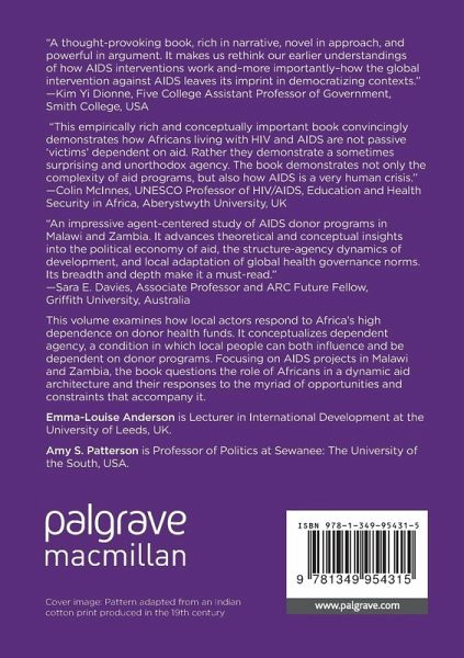 This volume examines how local actors respond to Africa's high dependence on donor health funds. It focuses on the large infusion of donor money to address HIV and AIDS into Malawi and Zambia and the subsequent slow-down in that funding after 2009. How do local people respond to this dynamic aid architecture and the myriad of opportunities and constraints that accompany it? This book conceptualizes dependent agency, and the condition in which local actors can simultaneously act and be dependent, and investigates conditions under which dependent agency occurs. Drawing upon empirical data from Malawi and Zambia collected between 2005 and 2014, the work interrogates the nuanced strategies of dependent agency: performances of compliance, extraversion, and resistance below the line. The findings elucidate the dynamic interactions between actors which often occur "off stage" but which undergird macro-level development processes.