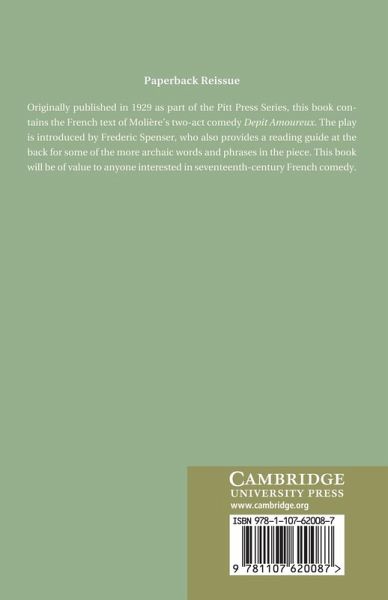 Originally published in 1929 as part of the Pitt Press Series, this book contains the French text of Molière's two-act comedy Depit amoureux. The play is introduced by Frederic Spenser, who also provides a reading guide at the back for some of the more archaic words and phrases in the piece. This book will be of value to anyone interested in seventeenth-century French comedy.