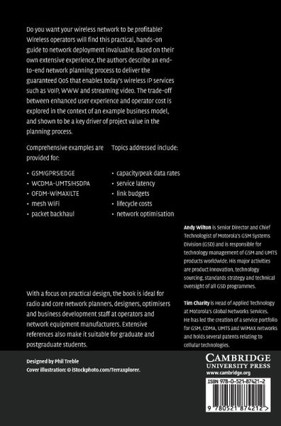 Do you want your wireless network to be profitable? Wireless operators will find this practical, hands-on guide to network deployment invaluable. Based on their own extensive experience, the authors describe an end-to-end network planning process to deliver the guaranteed Quality of Service (QoS) that enables today's wireless IP services such as VoIP, WWW and streaming video. The trade-off between enhanced user experience and operator cost is explored in the context of an enhanced business model. Comprehensive examples are provided for: - GSM/GPRS/EDGE - WCDMA-UMTS/HSDPA - OFDM-WiMAX/LTE - mesh WiFi - packet backhaul Topics addressed include: - capacity/peak data rates - service latency - link budgets - lifecycle costs - network optimisation With a focus on practical design, the book is ideal for radio and core network planners, designers, optimisers and business development staff at operators and network equipment manufacturers. Extensive references also make it suitable for graduate and postgraduate students.