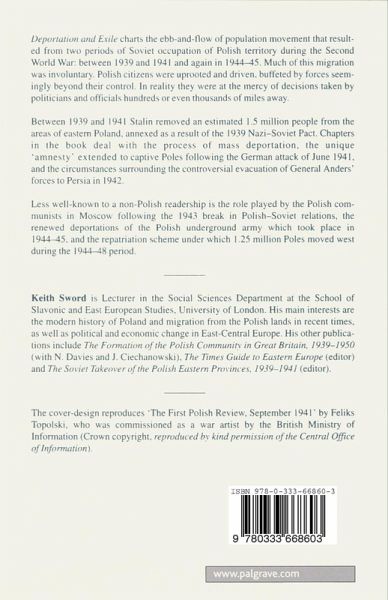 Deportation and Exile describes the fate of hundreds of thousands of Poles - men, women and children - deported to Soviet territory by Stalin's security agencies between 1939 and 1948. Amnestied in 1941, recruited to Polish units formed on Soviet soil, tens of thousands made their exit into Persia in 1942. The rest either made their way back to Poland as combat troops, having been recruited to a second, communist-led army in 1943-44, or else awaited formal repatriation agreements concluded towards the end of the war.