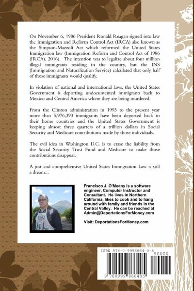From the Clinton administration in 1993 to the present year more than 5,976,393 immigrants have been deported back to their home countries and the United States Government is keeping almost three quarters of a trillion dollars in Social Security and Medicare contributions made by those individuals. In violation of national and international laws, the United States Government is deporting undocumented immigrants back to Mexico and Central America where they are being murdered.