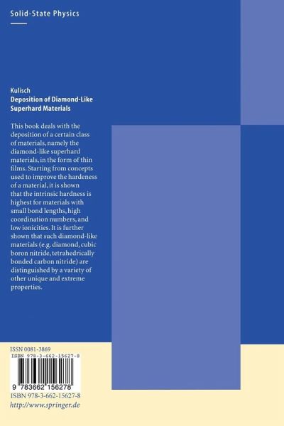 This book deals with the deposition of a certain class of materials, namely the diamond-like superhard materials, in the form of thin films. Starting from concepts used to improve the hardness of a material, it is shown that the intrinsic hardness is highest for materials with low bond lengths, high coordination numbers, and low ionicities. It is further shown that such diamond-like materials (e.g. diamond, cubic boron nitride, tetrahedrically bonded carbon nitride) are distinguished by a variety of other unique and extreme properties.