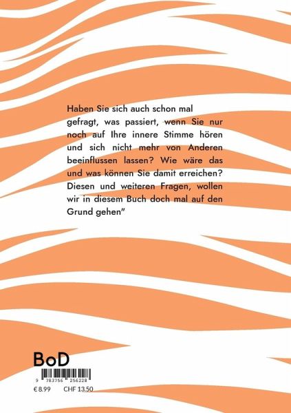 Haben Sie sich auch schon mal gefragt, was passiert, wenn Sie nur noch auf Ihre innere Stimme hören und sich nicht mehr von Anderen beeinflussen lassen? Wie wäre das und was können Sie damit erreichen? Diesen und weiteren Fragen, wollen wir in diesem Buch doch mal auf den Grund gehen"
