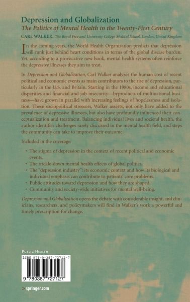 From the reviews: "This book is a personal treatise of depression and its relation to political and social events, especially in the United Kingdom and the United States since the late 1970s and early 1980s. ... This book might appeal to those interested in the history of mental illness (mainly depression) and its relation to global events, including sociopolitical changes occurring constantly throughout the world." (Steven T. Herron, Doody's Review Service, April, 2008) "According to Walker ... the neo-liberal economic policies that emerged in the 1980s and dominate the global market today have had a profound effect on the increase of depressive disorders in the US and the UK. In this volume intended for both general and academic readers, he discusses social and mental health trends, linking factors of globalization to a variety of disorders, also confronting its effects on how psychological science understands and treats them." (www.booknews.com, April, 2008) "One measure of a book is its effect on the reader's outlook. Although Depression and Globalization obliquely addresses clinical depression, I found while reading it that I began to listen to depressed patients differently. I felt newly attuned to the alienating effects of consumerist society on their lives, on its disruption of their family and social lives." (John C. Markowitz, MD, JAMA, November 5, 2008-Vol. 300, NO. 17)