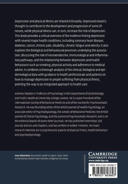 Depression and physical illness are intimately related. Depressed mood is thought to contribute to the development and progression of some illnesses, while physical illness can in turn increase the risk of depression. This book provides a critical overview of the evidence linking depression with several major health conditions, including coronary heart disease, diabetes, cancer, chronic pain, disability, chronic fatigue and obesity. It also explores the biological and behavioural processes underlying the association, discussing the role of neuroendocrine, immunological and inflammatory pathways, and the relationship between depression and health behaviours such as smoking, physical activity and adherence to medical advice. It combines a thorough analysis of the clinical, biological and epidemiological data with guidance to health professionals and patients on how to manage depression in people suffering from physical illness, pointing the way to an integrated approach to health care.