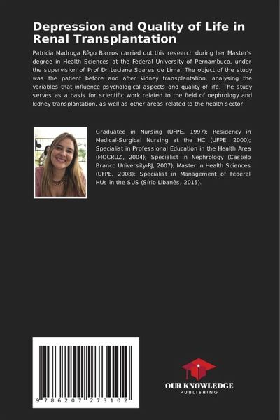 Patrícia Madruga Rêgo Barros carried out this research during her Master's degree in Health Sciences at the Federal University of Pernambuco, under the supervision of Prof Dr Luciane Soares de Lima. The object of the study was the patient before and after kidney transplantation, analysing the variables that influence psychological aspects and quality of life. The study serves as a basis for scientific work related to the field of nephrology and kidney transplantation, as well as other areas related to the health sector.