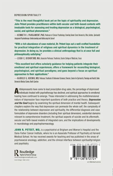 In Depression and the Soul, John Peteet proves the old adage that the best physician is also a philosopher. He considers how to approach the problem of depression within a larger context, and reviews current concepts of successful living relative to the heart (emotion and volition), the mind (cognition and coping), and the soul (the self in relation to transcendent reality). Each chapter goes on to further explore the relationship between depression and the context of a patient's entire life. This is done through consideration of how the existential struggles of depressed individuals engage their spiritual lives, by reviewing current empirical literature on depression and spirituality, comparing the perspectives of various spiritual traditions or world views, and summarizing ways that spirituality and depression interact.