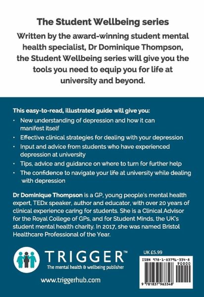 This illustrated pocket book offers advice, practical tips, and useful exercises for students to combat low moods and depression at university. Written by the award-winning student mental health specialist, Dr Dominique Thompson, this easy-to-read guide will ensure that students have all the tools they need to understand the sources of their depression and take steps to reclaim their life from its debilitating effects.Although plenty of people talk about depression, there are still a lot of misconceptions about it. This book will clearly explore what depression is, and investigate the ways in which it can affect anyone. With extracts from students' own accounts about their depression, and how they learned to manage it, and lots of practical, easy-to-follow examples and exercises, the book will help readers understand their depression, so they can deal with it in the right way for them.Above all, this book will help readers gain real power over their depression so that they can enjoy the full university experience on their terms.