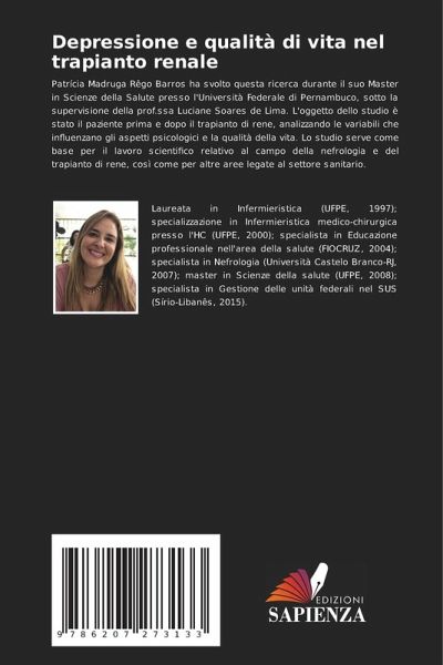 Patrícia Madruga Rêgo Barros ha svolto questa ricerca durante il suo Master in Scienze della Salute presso l'Università Federale di Pernambuco, sotto la supervisione della prof.ssa Luciane Soares de Lima. L'oggetto dello studio è stato il paziente prima e dopo il trapianto di rene, analizzando le variabili che influenzano gli aspetti psicologici e la qualità della vita. Lo studio serve come base per il lavoro scientifico relativo al campo della nefrologia e del trapianto di rene, così come per altre aree legate al settore sanitario.