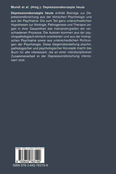 Depressionskonzepte heute enthält Beiträge zur Depressionsforschung, die als Grundlage sehr heterogene Hypothesen zur Ätiologie, Pathogenese und Therapie haben. Die Autoren kommen dementspechend aus den verschiedenen Fächern, die sich mit Depression beschäftigen, so aus der klinischen und der biologischen Psychiatrie und aus unterschiedlichen Richtungen der Psychologie. Diese Heterogenität macht das Buch für alle interessant, die an einer interdisziplinären Zusammenarbeit in der Depressionsforschung interessiert sind.