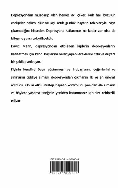 Depresyondan muzdarip ki¿iler için haz¿rlanan bu rehber 12 bölüme ayr¿lm¿¿t¿r ve içerikleri ää¿daki gibi kategorize edilebilir: - 1 ila 7. Bölümler depresyon hakk¿nda önemli bilgiler vermektedir, - Bölüm 8, özellikle öz bak¿m ve öz yeterlilik olmak üzere kendi kendine yard¿m olanaklar¿n¿ ele almaktad¿r, - Bölüm 9 ilaçla tedaviye odaklanmaktad¿r, - 10. Bölüm depresyonun nüksetmesi ile ilgilidir, - 11. Bölüm psikoterapinin gereklili¿i ve planlanmas¿ ile ilgilidir. - Bölüm 12'de ise yak¿nlar¿m¿zla ilgili konular ele al¿nmaktad¿r. Listeden de görülebilece¿i gibi, rehber depresif bir hastal¿ktan muzdarip olanlar için tüm önemli hususlar¿ kapsamaktad¿r. Bölümlerin hepsi ayn¿ aç¿k yap¿y¿ takip etmektedir: - Bir al¿nt¿ - Bölümün ana konusunun ayr¿nt¿l¿ bir ¿ekilde aç¿klanmas¿ - En önemli noktalar¿n bir özeti - Ki¿inin okuduklar¿ndan ç¿karmas¿ veya izlemesi gereken etkilerin veya ad¿mlar¿n bir aç¿klamas¿. Kitab¿n amac¿ okuyucular¿ kendilerine daha bilinçli davranmaya te¿vik etmektir. Bölümlerin hepsi basit, anlä¿l¿r bir dille yaz¿lm¿¿t¿r ve okumas¿ çok keyiflidir. Daha az zaman¿ olan veya daha 'tembel okuyucular' için, bölümlerin çok yap¿land¿r¿lm¿¿ alt bölümleri, sadece özetlerini ve bundan at¿lacak ad¿mlar¿ okumay¿ mümkün k¿lmaktad¿r.