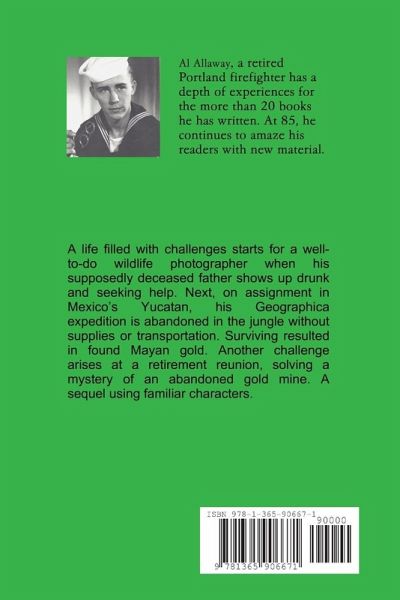 A life filled with challenges starts for a well-to-do wildlife photographer when his supposedly deceased father shows up drunk and seeking help. Next, on assignment in Mexico's Yucatan, his Geographica expedition is abandoned in the jungle without supplies or transportation. Surviving resulted in found Mayan gold, but continues to fight greed. Another challenge arises at a retirement reunion, solving a mystery of an abandoned gold mine. A sequel using familiar characters, still fighting greed.
