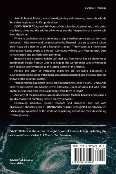 "Lucky indeed is the man who can follow his passions," contemporary Scottish artist Robert McBride tells an interviewer, "but if he doesn't go full-tilt at them, he's failing in life." Robert's main passions are oil painting and swimming. He excels at both. But either might turn his life upside down. DEPTH PERCEPTION, set in Edinburgh, Oxford, London, Cornwall and the Scottish Highlands, takes you into the life, the art, the adventures and the imagination of a remarkable Scottish painter. Who else but Robert McBride would announce at age 6 he'd become a great artist and be correct? Who else would swim naked in the Thames? Use art to tame a school bully? Leap off a train to court a beautiful stranger? Throw paint at a nobleman's bodyguards? Recite poetry to a mouse? Commune with the Loch Ness monster? Venture too close to a churning whirlpool? Dare to hide secrets and scandals in his paintings? Impulsive and eccentric, Robert will lead you from North Sea oil platforms to Buckingham Palace, from historic Oxford colleges to the world's third-largest whirlpool, from lively Scottish country dances to the raging storms of the Atlantic. Among the array of intriguing characters are art-loving policemen, a claustrophobic duke, an operatic florist, an avaricious landlord, and the witty eclectics known as the Boist'rous Oysters. You'll recognize luminaries like George Bernard Shaw, Robert Burns, Shakespeare, Rembrandt, Robert Louis Stevenson, George Orwell and Mary, Queen of Scots. But who is the mysterious, anonymous and unseen critic who stalks Robert McBride from town to town throughout Great Britain? And why, at the peak of Robert's success, does he become Chalky Bob, a grubby chalk artist humbling himself on dirty city sidewalks? And what is the one simple yet highly-significant question Robert asks all those who pose for his portraits? It's a question which few of us dare to confront. Will you decide to answer it? Combining adventure, humor, romance and suspense - and rich with observations about life and art - DEPTH PERCEPTION is a thoughtful, lyrical and often exhilarating exploration of the world of oil painting and of one man's fascinating creative journey.