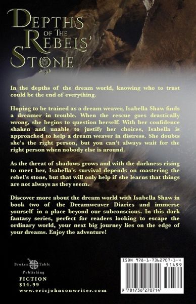 In the depths of the dream world, knowing who to trust could be the end of everything. Hoping to be trained as a dream weaver, Isabella Shaw finds a dreamer in trouble. When the rescue goes drastically wrong, she begins to question herself. With her confidence shaken and unable to justify her choices, Isabella is approached to help a dream weaver in distress. She doubts she's the right person, but you can't always wait for the right person when nobody else is around. As the threat of shadows grows and with the darkness rising to meet her, Isabella's survival depends on mastering the rebel's stone, but that will only help if she learns that things are not always as they seem. Discover more about the dream world with Isabella Shaw in book two of the Dreamweaver Diaries and immerse yourself in a place beyond our subconscious. In this dark fantasy series, perfect for readers looking to escape the ordinary world, your next big journey lies on the edge of your dreams. Enjoy the adventure!