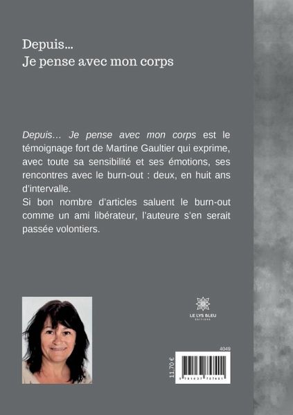 Depuis... Je pense avec mon corps est le témoignage fort de Martine Gaultier qui exprime, avec toute sa sensibilité et ses émotions, ses rencontres avec le burn-out: deux, en huit ans d'intervalle. Si bon nombre d'articles saluent le burn-out comme un ami libérateur, l'auteure s'en serait passée volontiers.