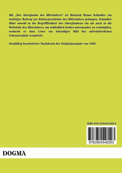 Mit Der Aberglaube des Mittelalters ist Heinrich Bruno Schindler ein wichtiger Beitrag zur Kulturgeschichte des Mittelalters gelungen. Schindler führt sowohl in die Begrifflichkeit des Aberglaubens ein als auch in die Weltsicht des Mittelalters, um schließlich beides miteinander zu verknüpfen, wodurch er dem Leser ein lebendiges Bild der mittelalterlichen Lebensrealität vermittelt.