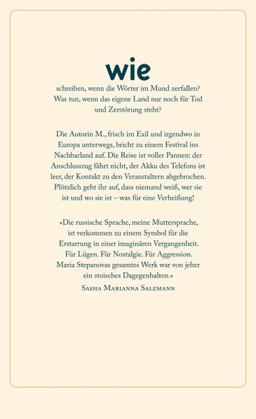 »Maria Stepanova denkt über die Unmöglichkeit nach, der Identität als Russin zu entkommen ... rhythmisch federnd von Olga Radetzkaja übersetzt ...« Jörg Plath Neue Zürcher Zeitung 20250111