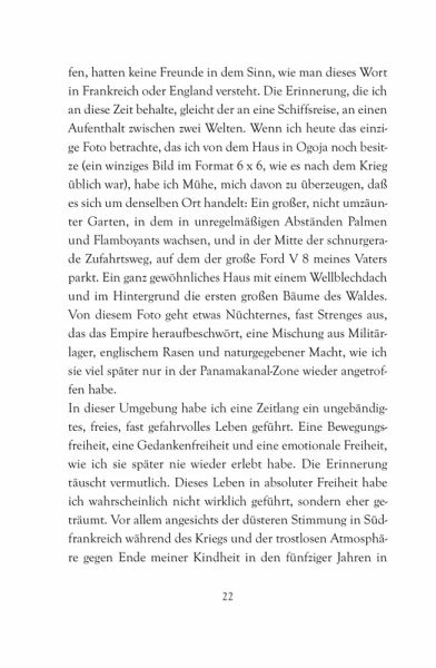 »Daher war der Aufenthalt in Ogoja für mich zu einem Kleinod geworden, zu einer strahlenden Vergangenheit, die ich nicht verlieren konnte. Und so erinnerte ich mich an die schimmernde rote Erde, die von der Sonnenhitze rissig gewordenen Wege, den Wettlauf barfuß über die Savanne zu den Festungen der Termitenhügel, das Heraufziehen des abendlichen Gewitters, die lauten, lärmenden Nächte, unsere Katze, die sich auf dem Wellblechdach mit Wildkatzen paarte, die Benommenheit, die der Fieberglut in den frühen Morgenstunden folgte, wenn durch das Moskitonetz kühle Luft hereindrang. Diese schwüle…mehr