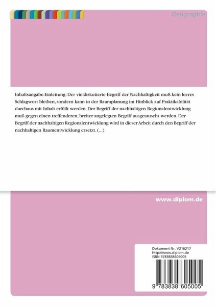 Der Begriff der nachhaltigen Regionalentwicklung muß gegen einen treffenderen, breiter angelegten Begriff ausgetauscht werden. Der Begriff der nachhaltigen Regionalentwicklung wird in dieser Arbeit durch den Begriff der nachhaltigen Raumentwicklung ersetzt.