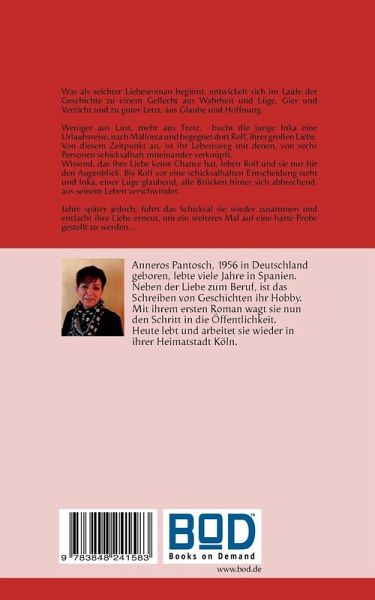 Was als seichter Liebesroman beginnt, entwickelt sich im Laufe der Geschichte zu einem Geflecht aus Wahrheit und Lüge, Gier und Verzicht und zu guter Letzt, aus Glaube und Hoffnung.Weniger aus Lust, mehr aus Trotz, bucht die junge Inka eine Urlaubsreise, nach Mallorca und begegnet dort Rolf, ihrer großen Liebe. Von diesem Zeitpunkt an, ist ihr Lebensweg mit denen, von sieben Personen schicksalhaft miteinander verknüpft.Wissend, das ihre Liebe keine Chance hat, leben Rolf und sie nur für den Augenblick. Bis Rolf vor eine schicksalhaften Entscheidung steht und Inka, einer Lüge glaubend, alle Brücken hinter sich abbrechend, aus seinem Leben verschwindet.Jahre später jedoch, führt das Schicksal sie wieder zusammen und entfacht ihre Liebe erneut, um ein weiteres Mal auf eine harte Probe gestellt zu werden...