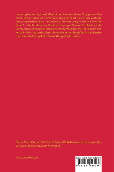 Im europäischen Spitzenfußball dominiert eine kleine Gruppe von Vereinen. Diese statistische Untersuchung analysiert für die vier wichtigsten europäischen Ligen - Bundesliga, Premier League, Primera División, Serie A - die Tendenz zur Dominanz weniger Vereine. Ein Blick auf die kommerziell ebenfalls erfolgreiche nordamerikanische Profiliga im Basketball - NBA - legt nahe, dass mit regulierenden Eingriffen in den Ligabetrieb eine stärker egalitäre Entwicklung möglich wäre.