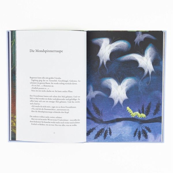 Die Schmetterlingsraupe, die kein Schmetterling werden, sondern eine Raupe bleiben will. Die Kreuzspinne, die Mitleid mit ihren Opfern hat und sie aus ihrem Netz befreit. Der Steinkauz, der nicht weiß, ob er tatsächlich eine Eule, oder doch nur ein Stein ist. - Sie alle leben in einem Baum, in einem kleinen und doch endlosen Kosmos, und stellen sich die kleinen und großen Fragen des Lebens.