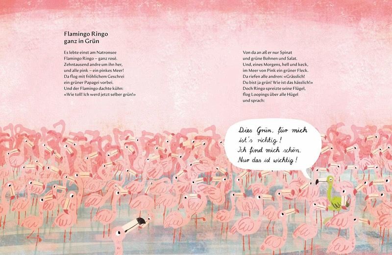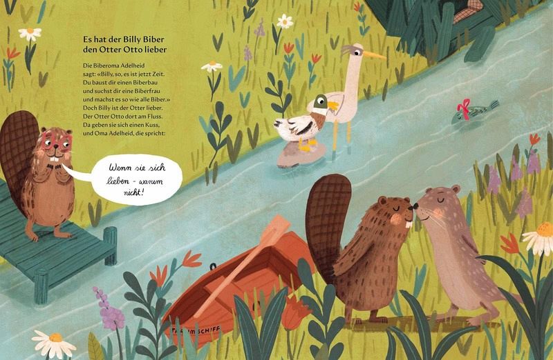 Tierisch anders, aber nicht minder toll! Hier tauschen Hahn und Henne munter ihre Rollen - denn ob der Hahn die Eier ausbrütet und die Henne morgens kräht, ist schließlich egal, solange alles funktioniert! Und Biber Billy findet den Otter Otto nun mal spannender als die Biberfrau. «Wenn sie sich lieben - warum nicht?», befindet Biber-Oma Adelheid. Dass Flamingos zwingend rosa sind, findet Flamingo Ingo ziemlich langweilig und beschließt, ein grüner Flamingo zu sein. Was die anderen Flamingos dazu sagen, lässt Ingo kalt. «Ich find mich schön. Nur das ist wichtig.»