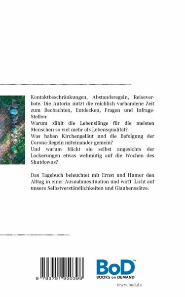 Kontaktbeschränkungen, Abstandsregeln, Reiseverbote. Nach einer Phase des Haderns nutzt die Autorin die reichlich vorhandene Zeit zum Beobachten, Entdecken, Fragen und Infrage-Stellen:Warum zählt die Lebenslänge für die meisten Menschen so viel mehr als Lebensqualität?Was haben Kirchengeläut und die Befolgung der Corona-Regeln gemein?Wie gehen andere Gesellschaften mit dem Virus um?Was wird sie selbst nach dem Shutdown vermissen?