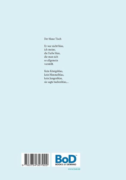 Der blaue TischEr war nicht blau,ich meine,die Farbe blau,die man sichso allgemeinvorstellt.Kein Königsblau,kein Himmelblau,kein Jungenblau,sie sagte taubenblau,...