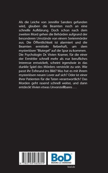 Als die Leiche von Jennifer Sanders gefunden wird, glauben die Beamten noch an eine schnelle Aufklärung. Doch schon nach dem zweiten Mord gehen die Behörden aufgrund der besonderen Umstände von einem Serienmörder aus. Die Öffentlichkeit ist alarmiert und die Beamten ermitteln fieberhaft, um dem mysteriösen "Blutegel" auf die Spur zu kommen.Die Psychologin Dr. Vivien Kramer, für die einer der Ermittler schnell mehr als nur berufliches Interesse entwickelt, scheint irgendwie in das dunkle Spiel des Mörders verstrickt zu sein. Wie passt ihr Exfreund ins Bild? Was hat es mit ihrem mysteriösen neuen Lover auf sich? Oder ist einer ihrer Patienten für die Taten verantwortlich? Das Morden geht rasend schnell weiter, und dann entdeckt Vivien etwas Unvorstellbares . . .
