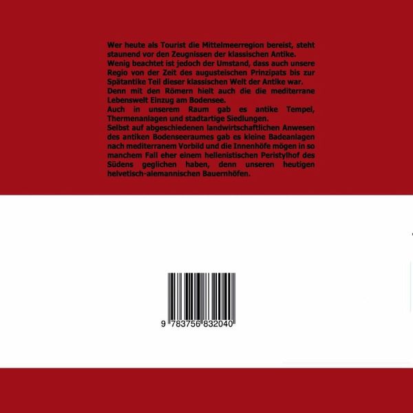 Über die Kultur der Antike im Mittelmeerraum ist relativ viel bekannt. Viel weniger wissen wir hingegen über die Regionen am Rande der antiken Welt. Auch der Bodenseeraum war Teil der antiken Koine. Der Leser, sei er nun Tourist oder Einheimischer, wird mit dem Leben am Bodensee in römischer Zeit und römischen Orten des Bodenseeraumes vertraut gemacht.Hierdurch erhält er anhand ausgewählter Lebensbereiche schlaglichtartig Einblicke in Alltag, Lebensweise und Mentalität der Bewohner des Bodenseeraums vor fast 2000 Jahren.