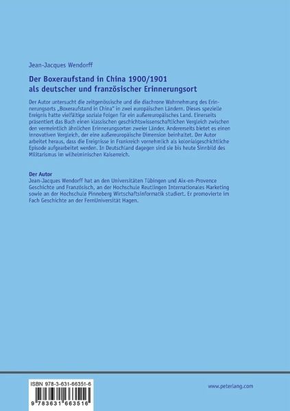 Der Autor untersucht die zeitgenössische und die diachrone Wahrnehmung des Erinnerungsorts "Boxeraufstand in China" in zwei europäischen Ländern. Dieses spezielle Ereignis hatte vielfältige soziale Folgen für ein außereuropäisches Land. Einerseits präsentiert das Buch einen klassischen geschichtswissenschaftlichen Vergleich zwischen den vermeintlich ähnlichen Erinnerungsorten zweier Länder. Andererseits bietet es einen innovativen Vergleich, der eine außereuropäische Dimension beinhaltet. Der Autor arbeitet heraus, dass die Ereignisse in Frankreich vornehmlich als kolonialgeschichtliche Episode aufgearbeitet werden. In Deutschland dagegen sind sie bis heute Sinnbild des Militarismus im wilhelminischen Kaiserreich.