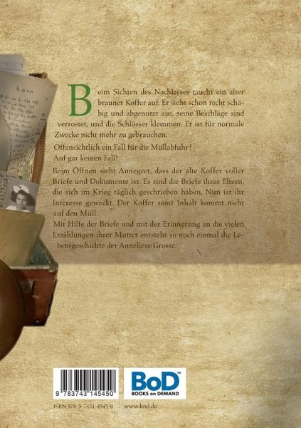 Beim Sichten des Nachlasses taucht ein alter brauner Koffer auf. Er sieht schon recht schäbig und abgenutzt aus, seine Beschläge sind verrostet und die Schlösser klemmen. Er ist für normale Zwecke nicht mehr zu gebrauchen.Offensichtlich ein Fall für die Müllabfuhr?Auf gar keinen Fall!Beim Öffnen sieht Annegret, dass der alte Koffer voller Briefe und Dokumente ist. Es sind die Briefe ihrer Eltern, die sich im Krieg täglich geschrieben haben. Nun ist ihr Interesse geweckt. Der Koffer samt Inhalt kommt nicht auf den Müll.Mit Hilfe der Briefe und mit der Erinnerung an die vielen Erzählungen ihrer Mutter entsteht so noch einmal die Lebensgeschichte der Anneliese Grosse.
