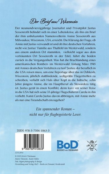 Der 49-jährige Journalist und Privatpilot Justus Sessenroth befindet sich in einer Lebenskrise, als ihn ein Brief der ihm unbekannten Namensvetterin Annie Sessenroth aus Milwaukee, Wisconsin, USA, erreicht. Die Klärung der Frage, ob Annie mit Justus verwandt ist und ob ihre deutschen Vorfahren, nicht wie Justus Familie aus Thalfeld im Westerwald, sondern aus einem anderen Ort stammten, vielleicht sogar aus dem verträumten Ort Sessenroth in der Eifel, führt die beiden zurück in die Vergangenheit. Was hat die Bruchlandung eines amerikanischen Bombers im Westerwald Anfang März 1945 mit Annies deutschen Vorfahren zu tun?Justus, der beruflich in die USA reisen muss, um eine Reportage über das in Oshkosh, Wisconsin, jährlich stattfindende, weltgrößte Fliegertreffen zu schreiben, verliebt sich Hals über Kopf in die hübsche, zehn Jahre jüngere Annie, die im Hauptberuf als Stewardess tätig ist. Justus gerät in einen Konflikt, denn kurz vor seiner Reise in die USA hat sich seine 33-jährige Flugschülerin Carola in ihn verliebt. Kann Carola Justus davon abbringen, mit Annie mehr als nur eine Freundschaft einzugehen? Ein spannender Roman, nicht nur für flugbegeisterte Leser.