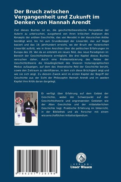 Ziel dieses Buches ist es, die geschichtstheoretische Perspektive der Autorin zu untersuchen, ausgehend von ihren kritischen Analysen des Konzepts der antiken Geschichte, das von Herodot in der klassischen Antike bestätigt wird, bis hin zum Grundkonzept der Linearität, das auf Hegel basiert und das 19. Jahrhundert erreicht, wo der Bruch der historischen Linearität auftritt, wie in ihren Ansichten über die politischen Erfahrungen im Europa des 20. Von da an entsteht ein neues Feld, das neue Paradigmen im Bereich der Geschichtstheorie ermöglicht. Die drei Kapitel dieses Buches versuchen daher, durch eine Problematisierung des Feldes der Geschichtstheorie die Unzulänglichkeit des linearen historiographischen Modus aufzuzeigen, auf dem das theoretische Feld der Geschichte beruht, sowie den Zeitraum zu identifizieren, in dem sich diese Brüchigkeit zeigt und wie sie sich zeigt. Zu diesem Zweck wird im ersten Kapitel der Begriff der Geschichte aus der Sicht der Philosophin Hannah Arendtund im zweiten Kapitel ihre Kritik daran dargelegt.