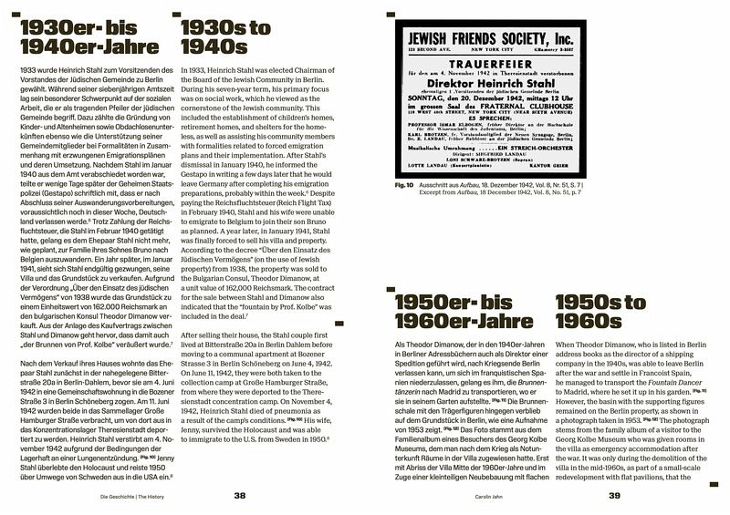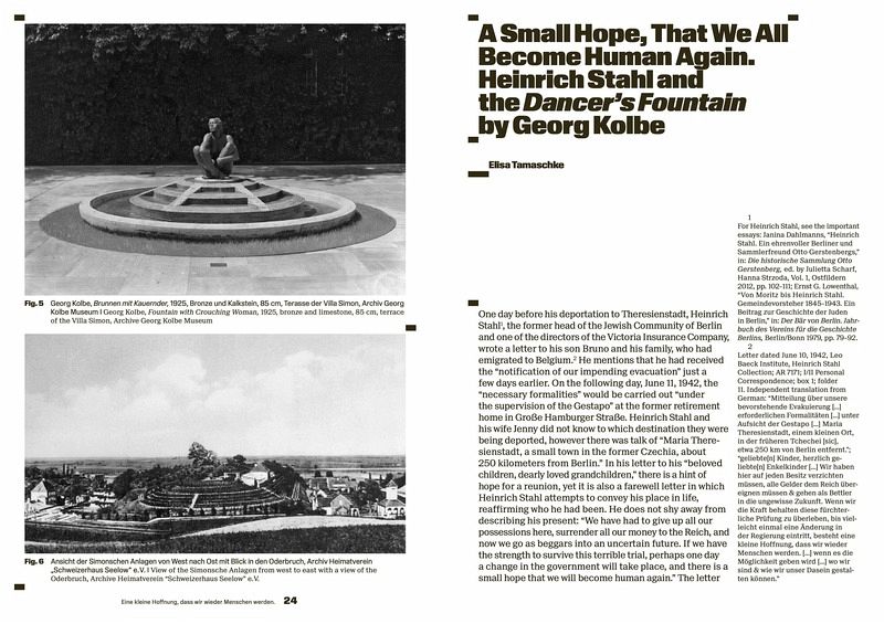 The point of departure for the publication project The Fountain, which is released in the summer of 2025 on occasion of the George Kolbe Museum' seventy-fifth anniversary, is the Fountain of Dancers (1922), which stands in the museum's sculpture garden. The book's objective is to subject the stereotypes implicit in the fountain figures to critical interrogation with a view to histories of racism and misogyny as well as the anti-Semitic history of the fountain as an object. An illustrated chronology retraces the object's eventful history; an art-historical essay by Carolin Jahn and Elisa Tamaschke (curator, Georg Kolbe Museum) provides the scholarly foundation. The volume is rounded out by the perspectives of writers and writing artists like Kirsty Bell, Max Czollek, Julia Grosse, Kasia Fudakowski, David Hartt, Markues, and Jimmy Robert