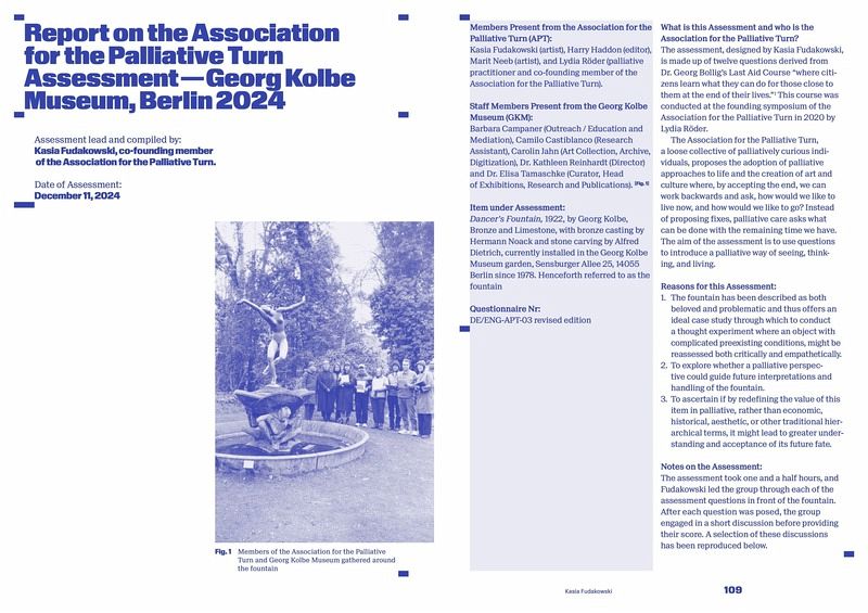 Ausgangspunkt für das Publikationsprojekt Der Brunnen, das anlässlich des 75-jährigen Bestehens des Georg Kolbe Museum im Sommer 2025 veröffentlicht wird, ist der im Skulpturengarten aufgestellte Tänzerinnen-Brunnen (1922). Das Buch soll eine kritische Stereotypenbefragung der dargestellten Personen in Bezug auf Geschichten des Rassismus und der Misogynie sowie der antisemitischen Objektgeschichte des Brunnens vornehmen. Eine bebilderte Chronologie von Carolin Jahn erzählt die bewegte Objektgeschichte, ein kunstwissenschaftlicher Beitrag von Elisa Tamaschke (Kuratorin, Georg Kolbe Museum) verankert die Betrachtung wissenschaftlich. Ergänzt wird dies durch Perspektiven von Autor_innen und Künstler_innen mit Schreibpraxis wie Kirsty Bell, Max Czollek, Julia Grosse, Kasia Fudakowski, David Hartt, Markues und Jimmy Robert