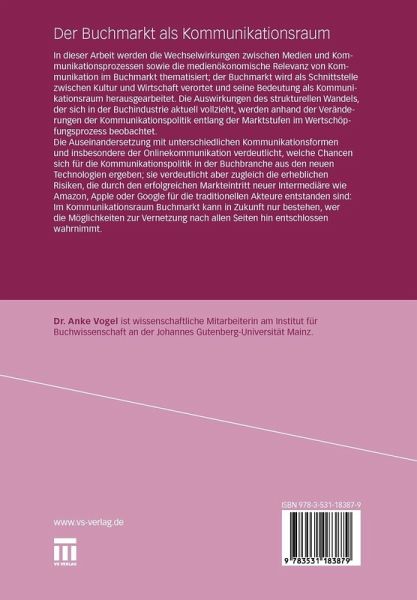 "Anke Vogel hat eine außerordentlich gut recherchierte Arbeit zum Status quo des Buchmarkts als Kommunikationsraum vorgelegt." www.rezensionen.ch, 02.04.2012 "Das Buch ist [...] eine Fundgrube für gesichertes Wissen rund um die Online-Kommunikation." Börsenblatt für den deutschen Buchhandel, 44-2011