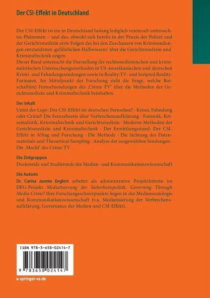 Der CSI-Effekt ist ein in Deutschland bislang nur marginal untersuchtes Phänomen. Dabei zeigen sich bereits in der Praxis der Polizei und Gerichtsmedizin erste Auswirkungen des bei den ZuschauerInnen von Krimisendungen entstandenen, gefährlichen Halbwissens' über die Arbeit der GerichtsmedizinerInnen - auch in Deutschland! Ausgehend von der Hypothese der bereits bestehenden Forschungen über den CSI-Effekt in den USA, dass insbesondere die Geschworenen vor US-amerikanischen Gerichtssälen sich auf das Wissen aus Crime-Sendungen berufen und zum Beispiel die rechtsmedizinische Methode der DNA-Analyse unter Rückgriff auf die konsumierten Fernsehsendungen als Allheilmittel stilisieren, untersucht der vorliegende Band die Darstellung der rechtsmedizinischen und kriminalistischen Untersuchungsmethoden in US-amerikanischen und deutschen Krimi- und Fahndungssendungen sowie in weiteren Reality-TV und Scripted Reality Formaten, die sich mit den modernen Methoden der Verbrechensaufklärung beschäftigen. Im Mittelpunkt dieser Forschung steht die Frage, welche Botschaft uns das Fernsehen über die Methoden der Gerichtsmedizin und Kriminaltechnik mitteilt und welches Potential das Fernsehen als Akteur im Feld der Verbrechensaufklärung besitzt, das Verständnis von den Möglichkeiten der Verbrechensaufklärung bei den ZuschauerInnen zu prägen. Das Ergebnis dieser exemplarisch an vier hermeneutisch-wissenssoziologisch ausgewerteten Beispielsendungen dargelegten Forschungsarbeit überrascht: Nicht in jeder Sendung über Verbrechensaufklärung - insbesondere nicht in den deutschen Formaten - werden die modernen naturwissenschaftlichen Methoden der Kriminaltechnik und Gerichtsmedizin als Allheilmittel dargestellt .