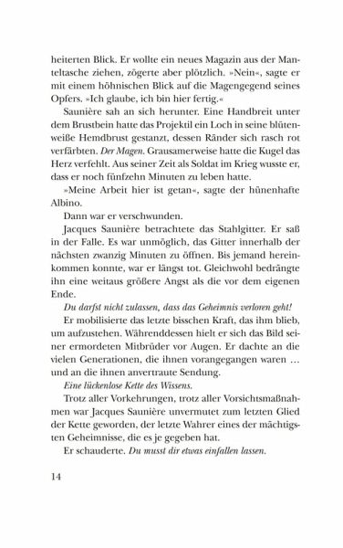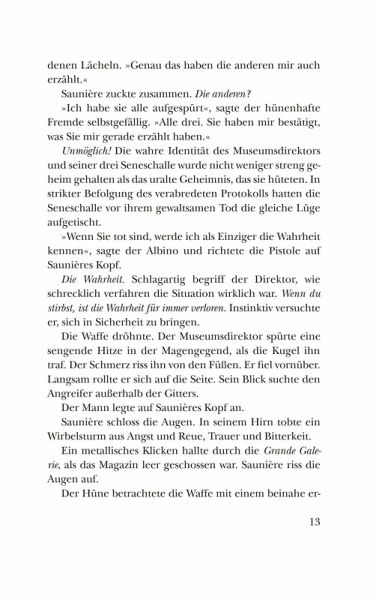 er selbst steht unter Mordverdacht. Zusammen mit der Enkelin des Ermordeten kann er jedoch fliehen…mehrRobert Langdon ist ein anerkannter Forscher und Experte für Symbolik. Als er in Paris eine Vortrag hält, wird er von der Polizei zu einem schaurigen Mordfall gerufen. Der Direktor des Louvre wurde dort ermordet und hat Hinweise hinterlassen, die es nun zu entschlüsseln gilt. Was Langdon nicht weiß: er selbst steht unter Mordverdacht. Zusammen mit der Enkelin des Ermordeten kann er jedoch fliehen und versucht nun, die ihm gedeuteten Zeichen zu lesen. Nicht nur die Polizei ist ihnen auf den Fersen, sondern auch die religiöse Organisation Opus Dei. Denn es geht um ein Geheimnis, welches das religiöse Weltbild zum Einsturz bringen könnte.