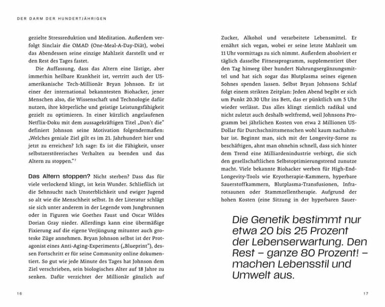 In der Einführung erhalten wir Informationen über die Motivation der medizinischen Autorin dieses Buch zu schreiben. Außerdem werden das Ärzteduo vorgestellt. Positiv fand ich, dass beide Ärzte sich aufgrund eigener gesundheitlicher Probleme mit dem Thema Darmgesundheit auseinander gesetzt haben und ihre Forschungen deshalb darauf ausgerichtet haben. Das wirkt auf mich glaubwürdig und nachvollziehbar. Bei den Geheimnissen für ein langes Leben in den Blue Zones bin ich etwas zwiegespalten. Die neun Komponenten eines langen Lebens sind nachvollziehbar dargestellt, allerdings gibt es auch hier in der Literatur widersprüchliche Aussagen.