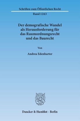Andrea Edenharter beschäftigt sich mit der Frage, welche Lösungen das Raumordnungsrecht, das Städtebaurecht und das Bauordnungsrecht für die durch den demografischen Wandel hervorgerufenen Probleme gegenwärtig bereithalten. Ausgangspunkt der Untersuchung, welche auch die verfassungsrechtlichen Vorgaben mit in den Blick nimmt, sind die bestehenden gesetzlichen und planerischen Regelungen. Die Analyse kommt zu dem Ergebnis, dass die geltenden Vorschriften des Raumordnungsrechts die Herausforderungen des demografischen Wandels durchaus im Blick haben, insgesamt aber nur über eine begrenzte Steuerungswirkung verfügen. Hinsichtlich des Städtebaurechts zeigt sich, dass die vorhandenen Regelungen kaum ausreichen, um die Probleme des demografischen Wandels in den Griff zu bekommen. Auch das Bauordnungsrecht eignet sich nur bedingt, um Herausforderungen, wie dem Verfall von Gebäuden, wirksam zu begegnen.