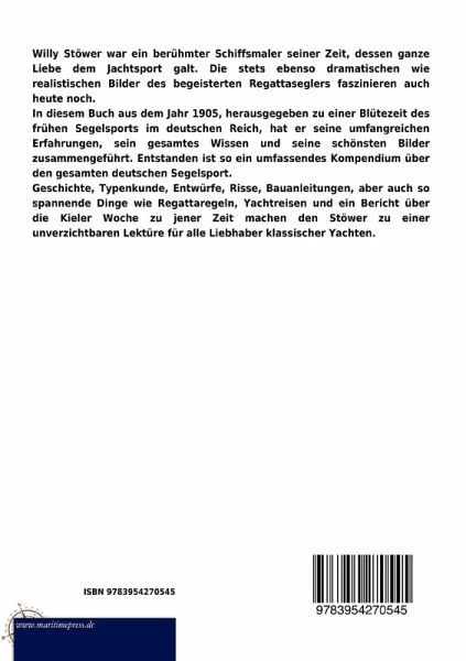 Geschichte, Typenkunde, Entwürfe, Risse, Bauanleitungen, aber auch so spannende Dinge wie Regattaregeln, Yachtreisen und ein Bericht über die Kieler Woche zu jener Zeit machen den Stöwer zu einer unverzichtbaren Lektüre für alle Liebhaber klassischer Yachten.