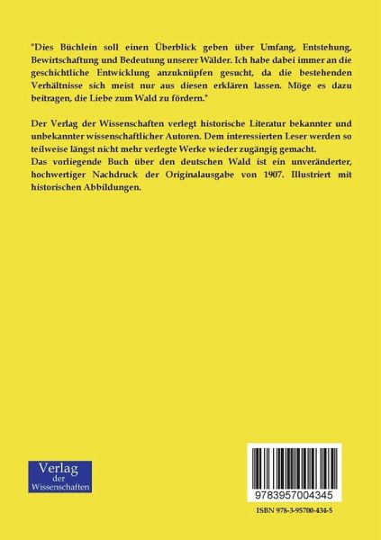 Das vorliegende Buch über den deutschen Wald ist ein unveränderter, hochwertiger Nachdruck der Originalausgabe von 1907. Illustriert mit historischen Abbildungen.