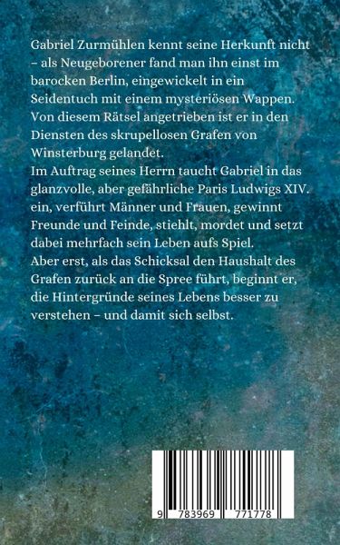 Gabriel Zurmühlen kennt seine Herkunft nicht - als Neugeborener fand man ihn einst im barocken Berlin, eingewickelt in ein Seidentuch mit einem mysteriösen Wappen. Von diesem Rätsel angetrieben ist er in den Diensten des skrupellosen Grafen von Winsterburg gelandet.Im Auftrag seines Herrn taucht Gabriel in das glanzvolle, aber gefährliche Paris Ludwigs XIV. ein, verführt Männer und Frauen, gewinnt Freunde und Feinde, stiehlt, mordet und setzt dabei mehrfach sein Leben aufs Spiel.Aber erst, als das Schicksal den Haushalt des Grafen zurück an die Spree führt, beginnt er, die Hintergründe seines Lebens besser zu verstehen - und damit sich selbst.
