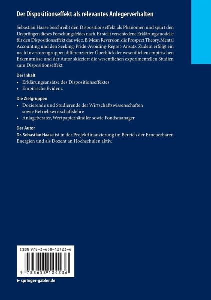 SebastianHaase beschreibt den Dispositionseffekt als Phänomen und spürt den Ursprüngen diesesForschungsfeldes nach. Er stellt verschiedene Erklärungsmodelle für denDispositionseffekt dar, wie z. B. Mean Reversion, die Prospect Theory, MentalAccounting und den Seeking-Pride-Avoiding-Regret-Ansatz. Zudem erfolgt ein nachInvestorengruppen differenzierter Überblick der wesentlichen empirischenErkenntnisse und der Autor skizziert die wesentlichen experimentellen Studienzum Dispositionseffekt.