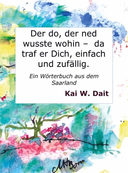 Der do, der ned wusste wohin - da traf er Dich, einfach und zufällig.Ein Wörterbuch aus dem Saarland Kai W. Dait ... es kann jede und jeden treffen - davor ist niemand gefeit. doch zur Abwehr kann Jeder etwas beitragen.Es ist wie es ist - es trifft jedes Jahr etwa 74.500 Frauen, die an Brustkrebs erkranken. Früherkennung und Hartnäckigkeit helfen um in ein Krebsfrüherkennungssystem zu kommen. Nicht nur bei Brustkrebs - der 1. Schritt im Kampf gegen das Ungeheuer ist der Schritt nach vorne! Nicht den Kopf in den Sand stecken - zeitig zum Arzt gehen rettet Dir wertvolle Lebensmonate.Darum geh zur Vorsorge und fall' den Leuten auf den Wecker - es ist Dein Leben! Du hast nur das eine! Vergiss das Lachen und Reden nicht. ISBN: 9789403767253