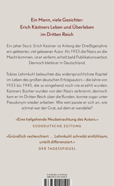 Berlin, Anfang der Dreißigerjahre. Erich Kästner befindet sich auf dem Höhepunkt seines Erfolgs: «Pünktchen und Anton» und «Das fliegende Klassenzimmer» begeistern international, «Emil und die Detektive» wird 1931 verfilmt (Drehbuch Billy Wilder). Dann die Zäsur: Als die Nazis die Macht übernehmen, entscheidet sich Kästner, in Deutschland zu bleiben. Er, der kurz zuvor noch ein Spottgedicht auf Hitler verfasst hat, muss vor Ort mitverfolgen, wie seine Bücher verbrannt werden; bald darauf erhält er Publikationsverbot. Und doch gelingt es ihm, über die Runden zu kommen, und das nicht einmal schlecht. Er schreibt unter Pseudonymen, übernimmt Auftragsarbeiten, zuletzt auch für die UFA, die längst von Goebbels politisch instrumentalisiert wird. All das wirft Fragen auf: Wie weit passte Kästner sich im Dritten Reich an, wo bekannte er Farbe? Wie schmal war der Grat, auf dem er wandelte?