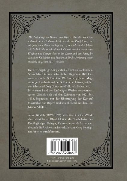 "Die Bedeutung des Herzogs von Bayern, über die ich schon während meiner früheren Arbeiten nicht im Zweifel war, trat mir jetzt noch klarer vor Augen: (...) er spielte in den Jahren 1621-1623 die entscheidende Rolle und bewirkte durch seine Klugheit und Energie, dass er den Kaiser und den Papst, die deutschen Katholiken und Frankreich für die Förderung seiner Wünsche zu gewinnen (...) wusste."Der Dreißigjährige Krieg entschied sich auf zahlreichen Schauplätzen in unterschiedlichen Regionen Mitteleuropas - von der Schlacht am Weißen Berg bis zur Magdeburger Hochzeit und der Schlacht bei Lützen, bei der der Schwedenkönig Gustav Adolfs II. sein Leben ließ.Im vierten Band des fünfteiligen Werkes konzentriert Anton Gindely sich auf den Zeitraum von 1621 bis 1632, beginnend mit der Übertragung der Kur auf Maximilian von Bayern und abschließend mit dem Tod Gustav Adolfs II. Anton Gindely (1829-1892) präsentiert in seinem fünfteiligen Werk einen detaillierten Überblick über die Geschehnisse des Dreißigjährigen Krieges, für welches er als Erster methodisch die Archive annähernd aller am Krieg beteiligten Parteien durchforschte.